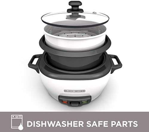 Dinner is easier with the BLACK+DECKER 6-Cup Electric Rice Cooker. Cooking takes just 20-30 minutes, and the unit keeps the delicious, fluffy rice ready to serve long after cooking is complete with an automatic “keep warm” function. Use it as a food steamer, too! The included steaming basket lets you prepare healthy meals with vegetables, fish, and more. Cleanup is a cinch with the dishwasher-safe, nonstick rice pot and tempered glass lid. Plus, you can use the electric cooker to prepare soups, stews, and even oatmeal! With a 1 to 6-cup capacity, this electric rice cooker is great for small and large servings. Dishwasher-Safe Parts – The rice pot and tempered glass lid can be cleaned in the dishwasher.