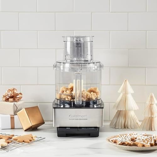 The Cuisinart DFP-14BCNY custom food Processor has an extra-large Feed tube that holds whole fruits and vegetables. Features a 14-Cup work bowl, 4mm stainless steel Medium slicing disc, stainless steel shredding disc, and chopping/mixing blade. Includes a spatula and recipe book.