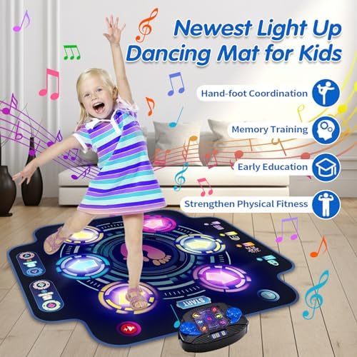 💃【Educational Toys & Perfect Gift for Kids】– Unleash the joy of dance with our Light-up Dance Mat Toy – the ultimate gift for kids and dance lover! This interactive toy brings the excitement of dancing into your family. With its cool design and easy-to-use controls, it provides endless entertainment for ages 3 up. Let the music guide your kids moves and light up your little one world with this incredible dance mat toy. Get ready to groove and create unforgettable memories!