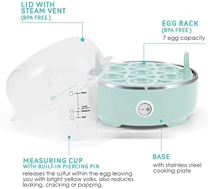 SEVEN EGG CAPACITY: Cook up to 7 eggs in soft, medium, or hard-boiled firmness, while saving time and water. Eggs come out consistently perfect, shell is easy to peel, and cleanup is simple!