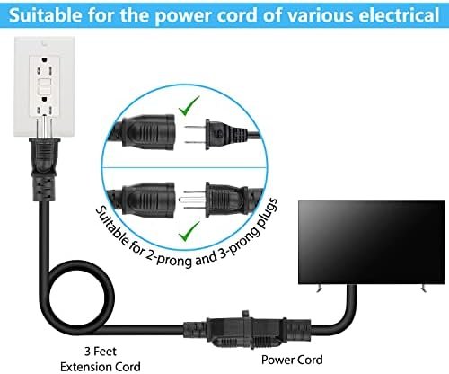 Space Efficient – The extension cord saves space on your power strip or wall outlet, don’t need to worry about large plugs waste outlet space any more.