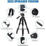 【Tripod for All Camera and Phone】Additional quick-release plates and phone mount maximize the compatibility to the greatest extent. Standard 1/4″ screw mount compatible with all cameras (Nikon D3500, Fujifilm X-T200, Canon EOS 250D, Olympus, Panasonic), DSLR, SLR, webcams, compact camcorders, digital cinema cameras, projector, ring light, spotting scopes, and binoculars. The 360° phone mount is compatible with iPhone 14 13 12 11/11 Pro/XS Max/XS/XR/X/8/8 plus/ Galaxy Note 9/S10/S20.